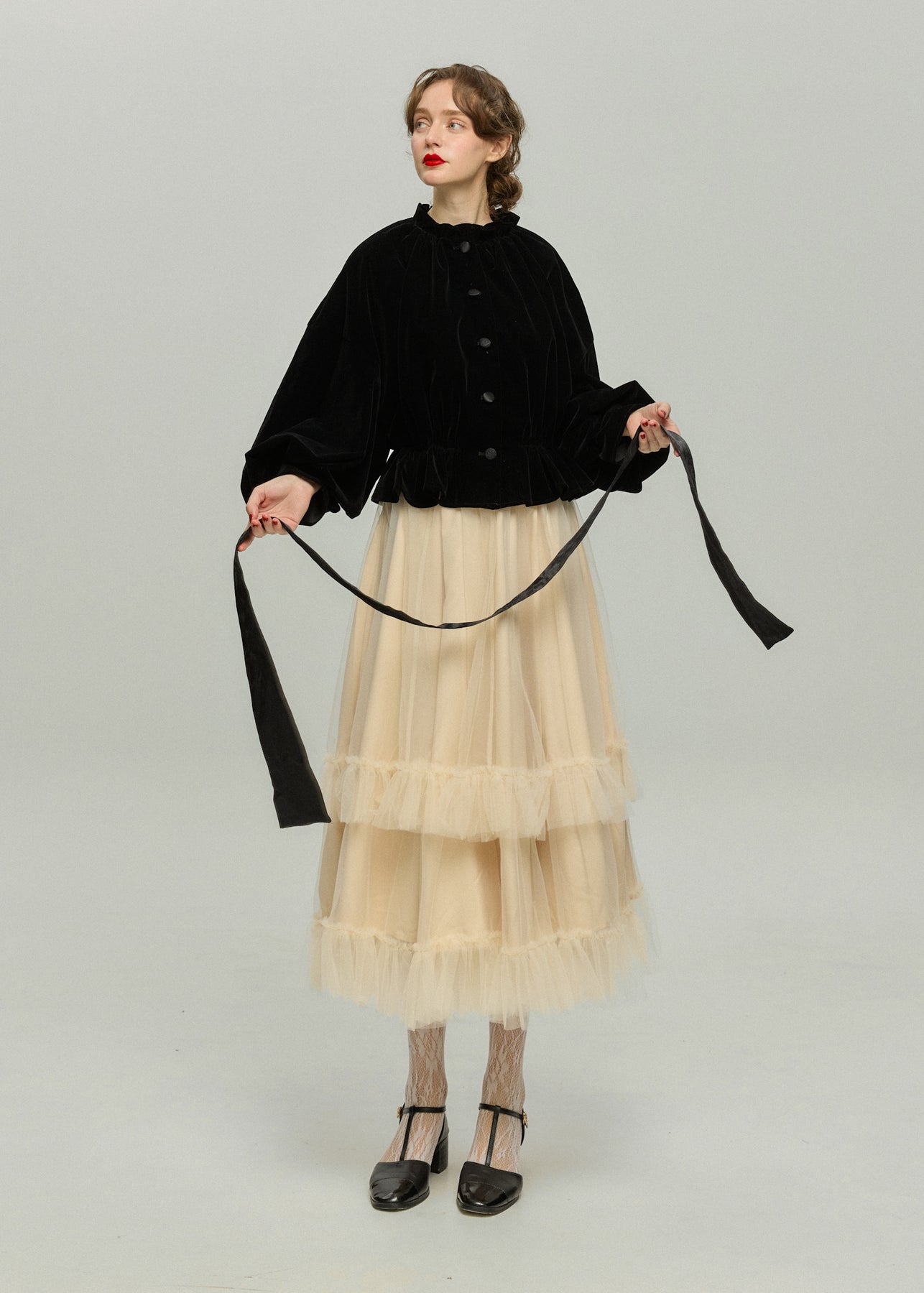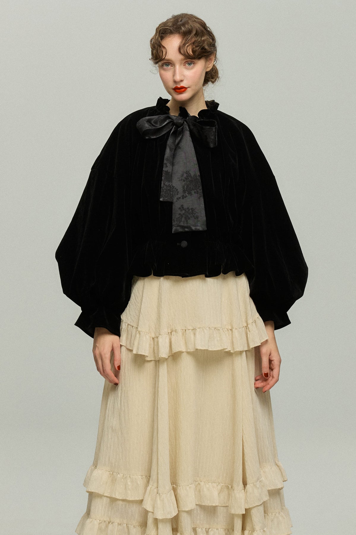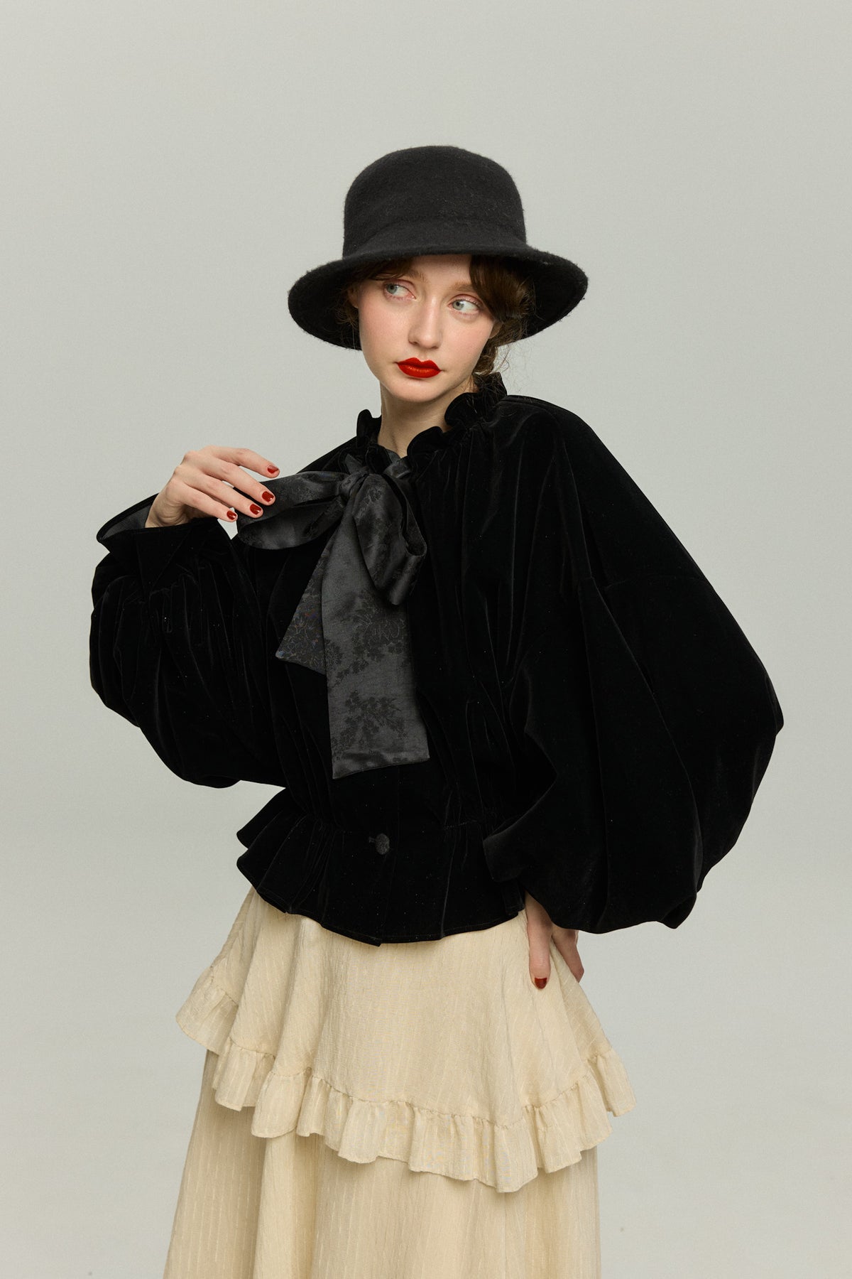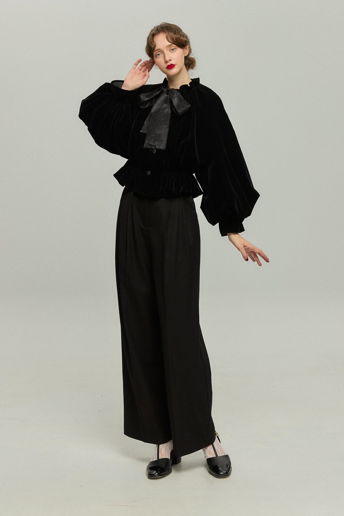 《アルファベット順に並べる》バルーンスリーブリボントップス-Black