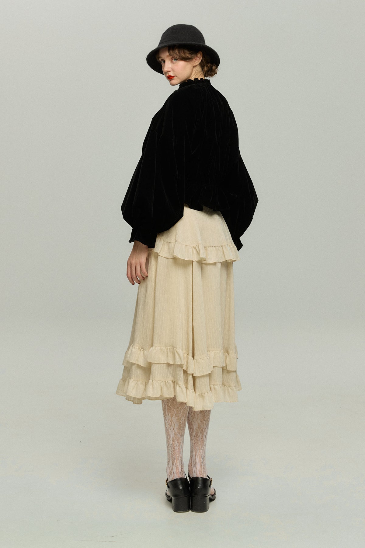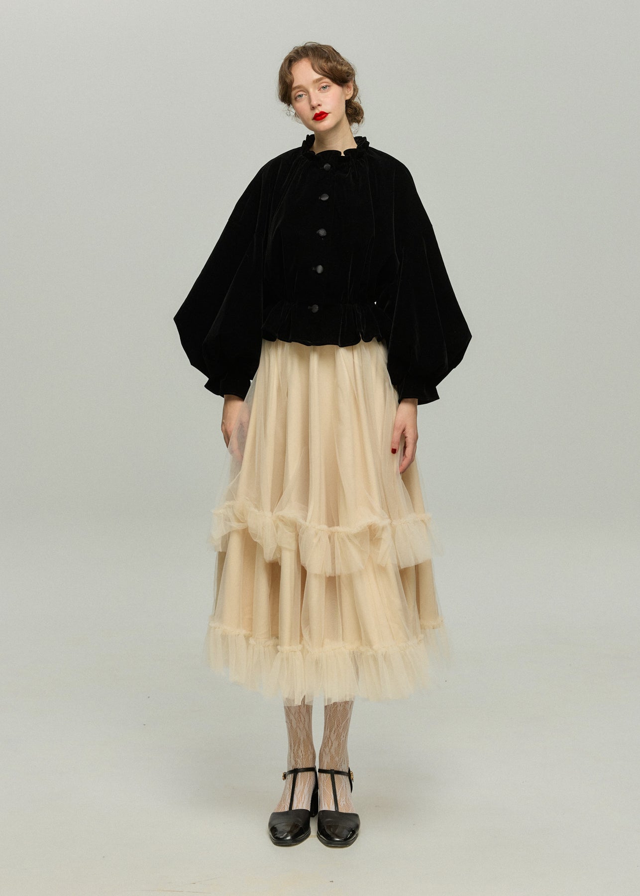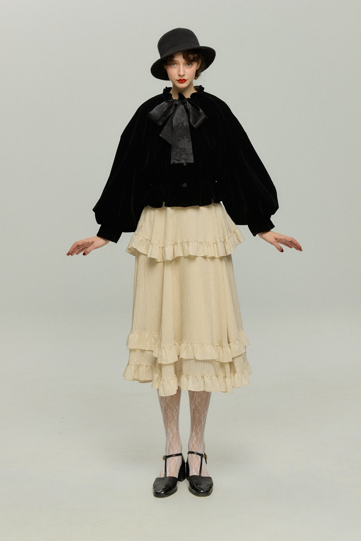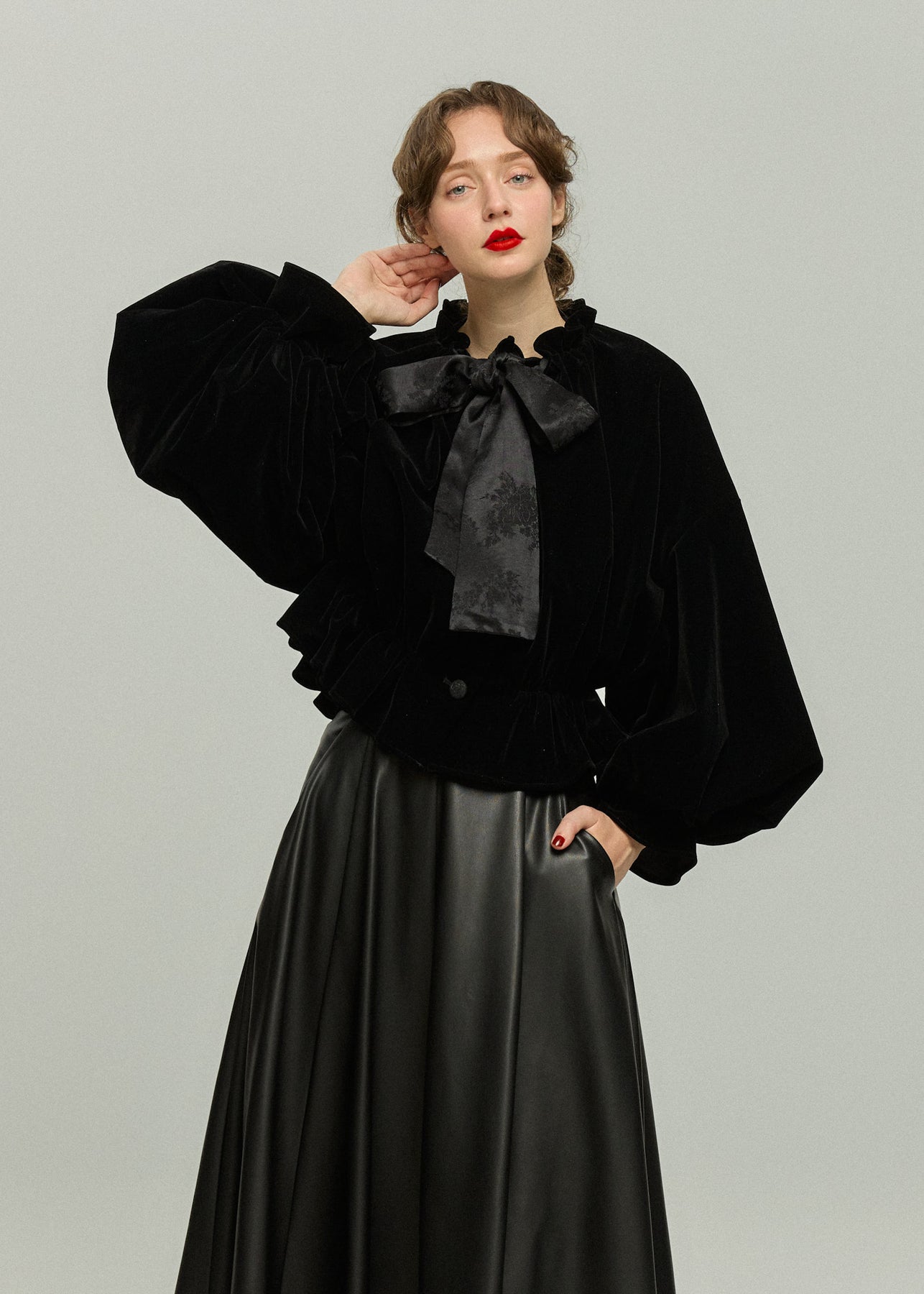 《アルファベット順に並べる》バルーンスリーブリボントップス-Black