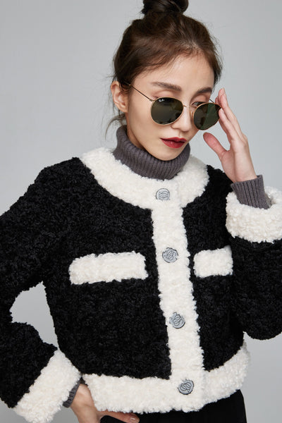 《私は今ラスベガスにいる》カーリーファージャケット-Black