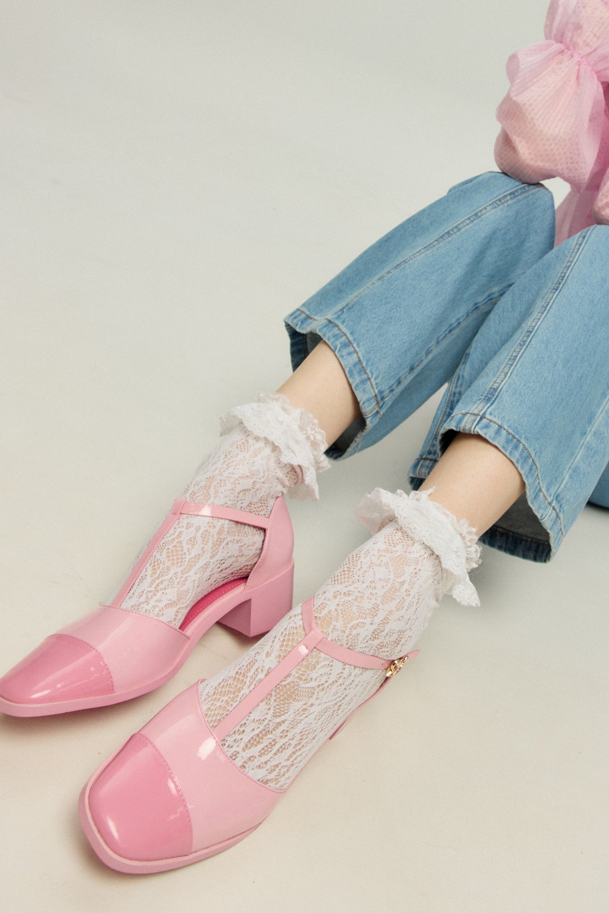 - Tストラップはやや低めに配置し足が細長く見えるように調整