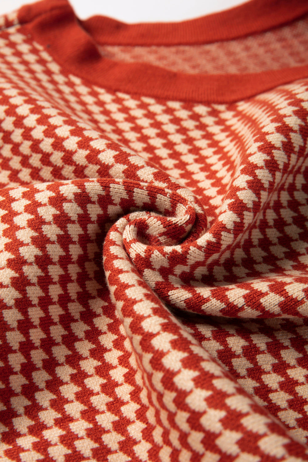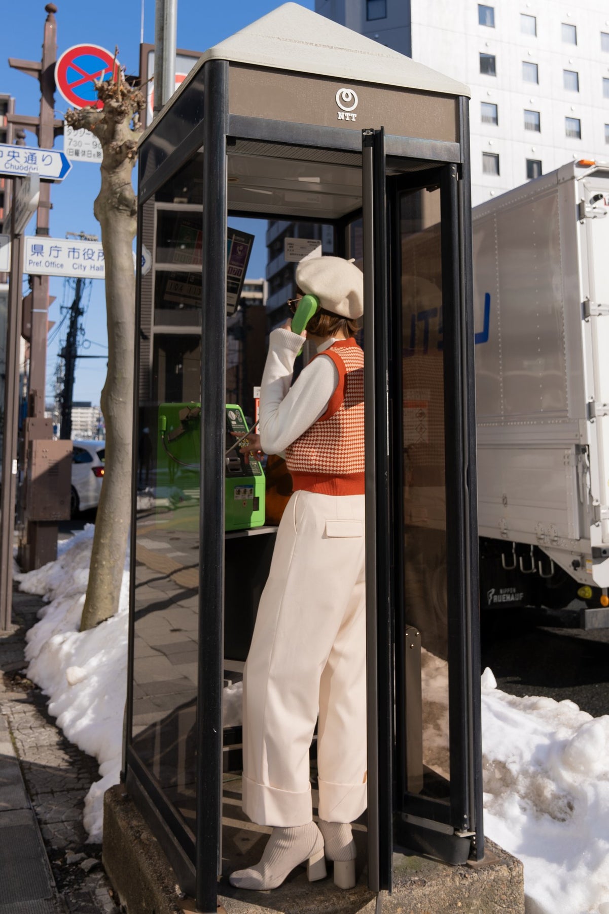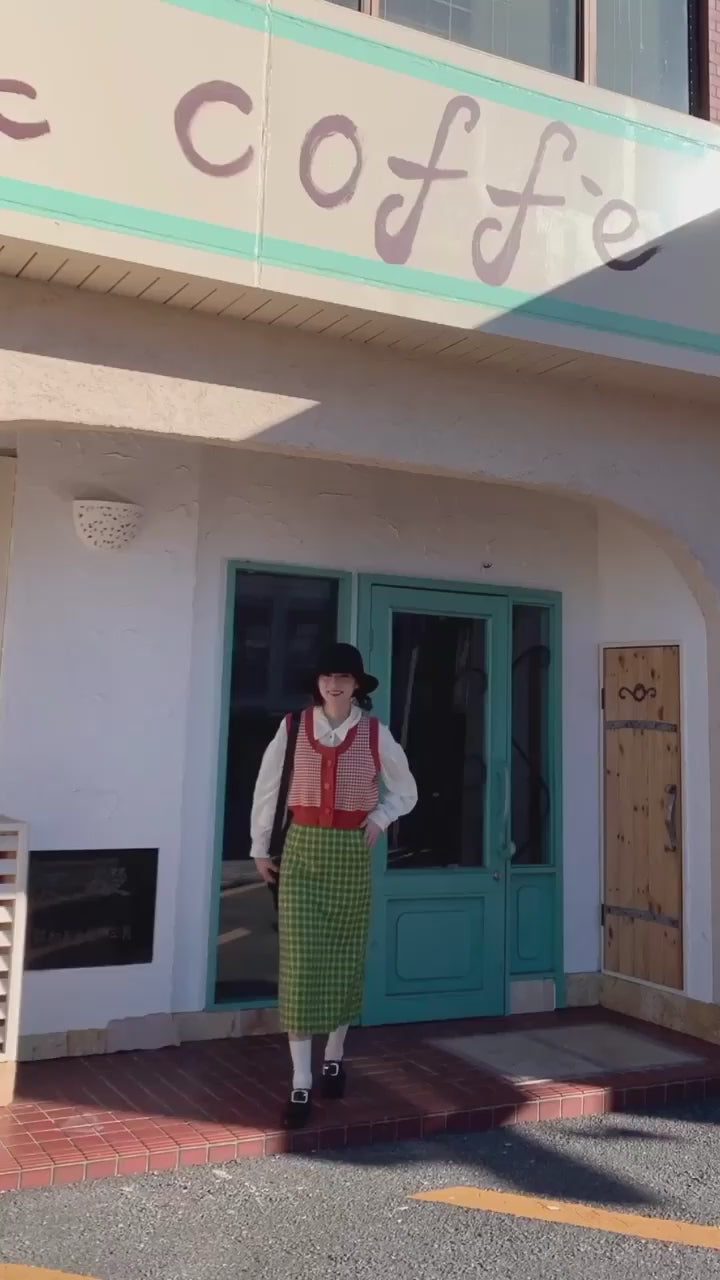 《壊れたフィルム》ハウンドトゥースチェックベスト-Orange red