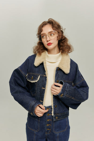 《犬のバルーンアート》ボアデニムジャケット-Navy