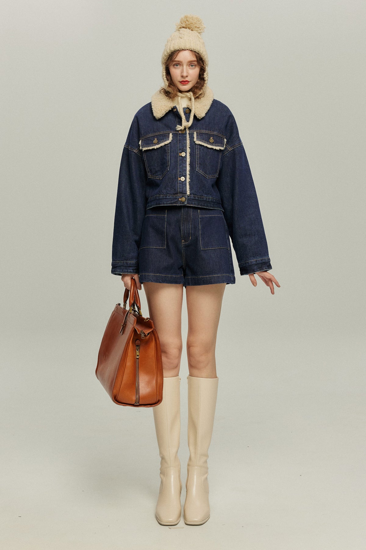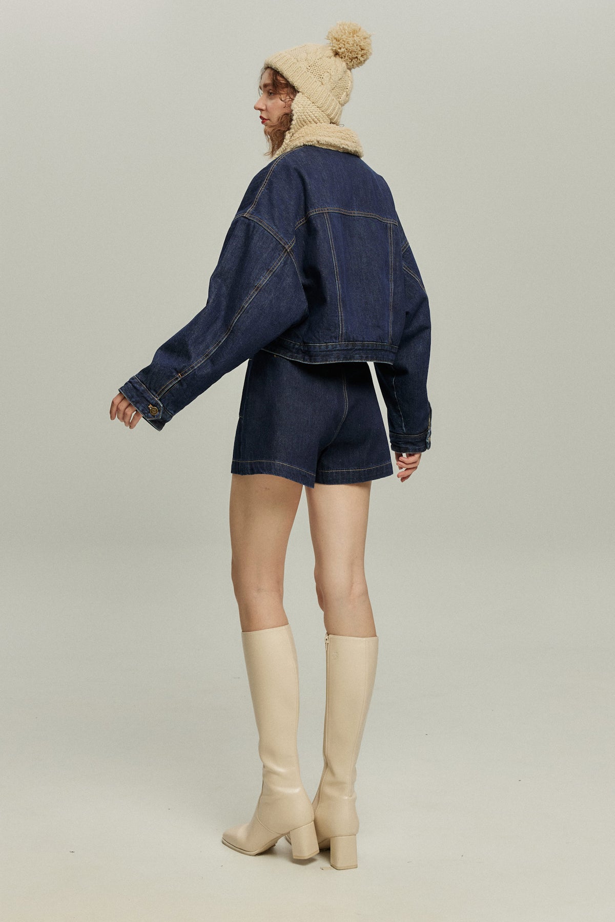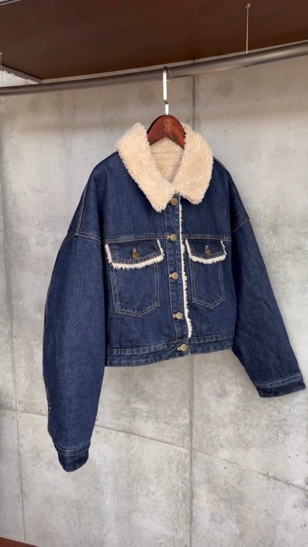《犬のバルーンアート》ボアデニムジャケット-Navy
