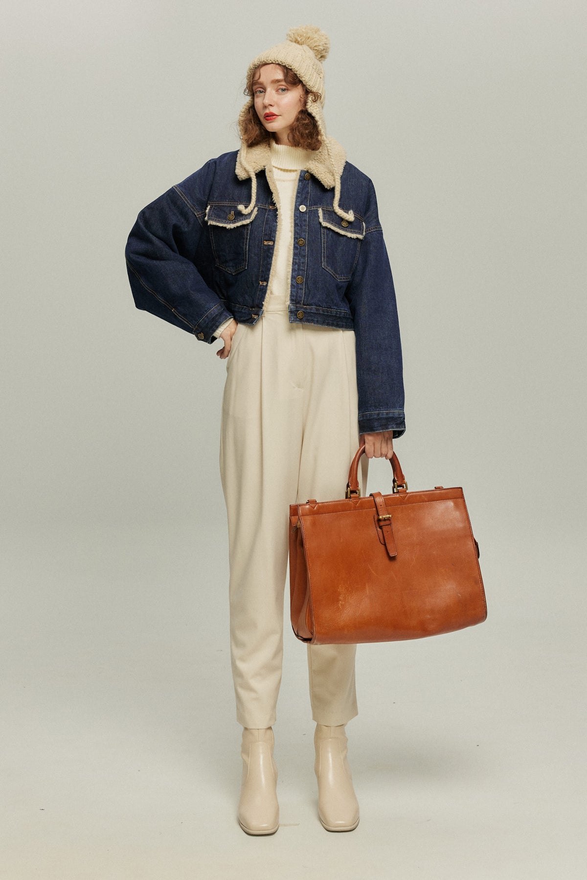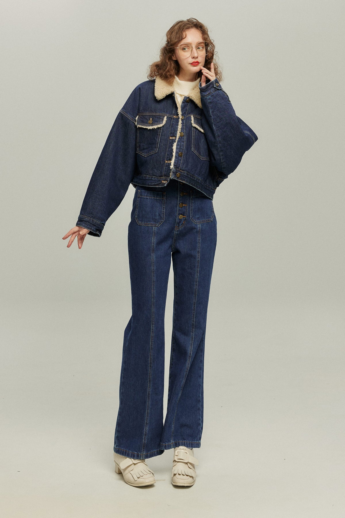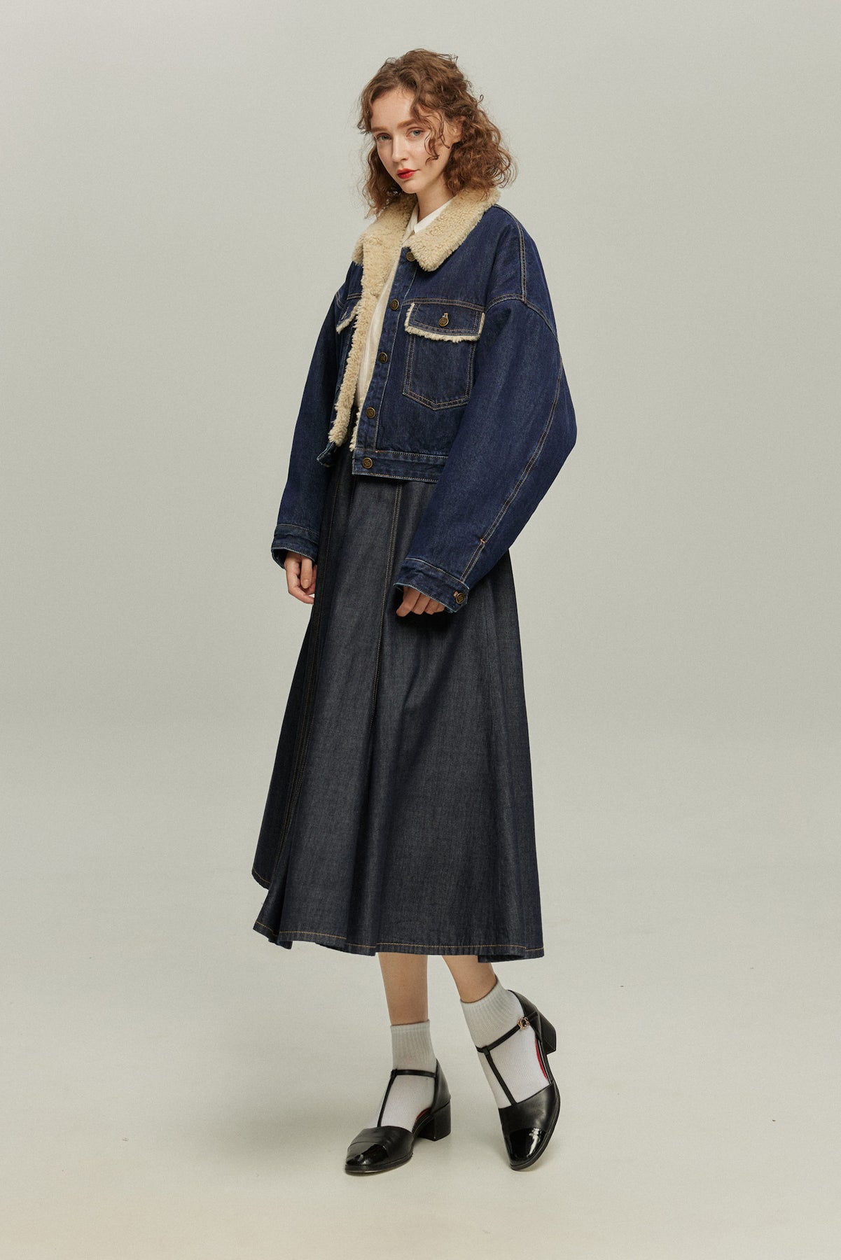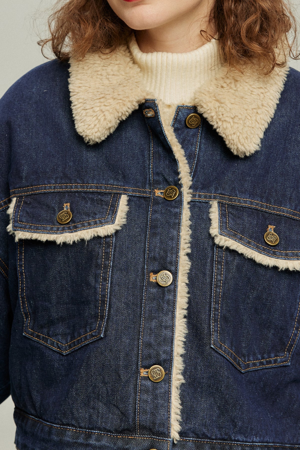 《犬のバルーンアート》ボアデニムジャケット-Navy