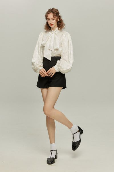 《ソファーにワックスする日》バルーンスリーブリボンタイトップス-White