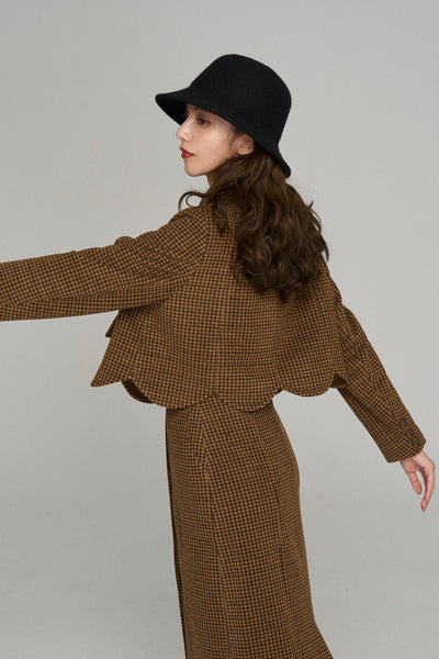 《蝶々になってしまった》スカラップデザインコート-Brown