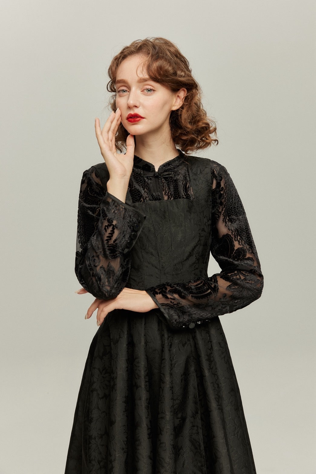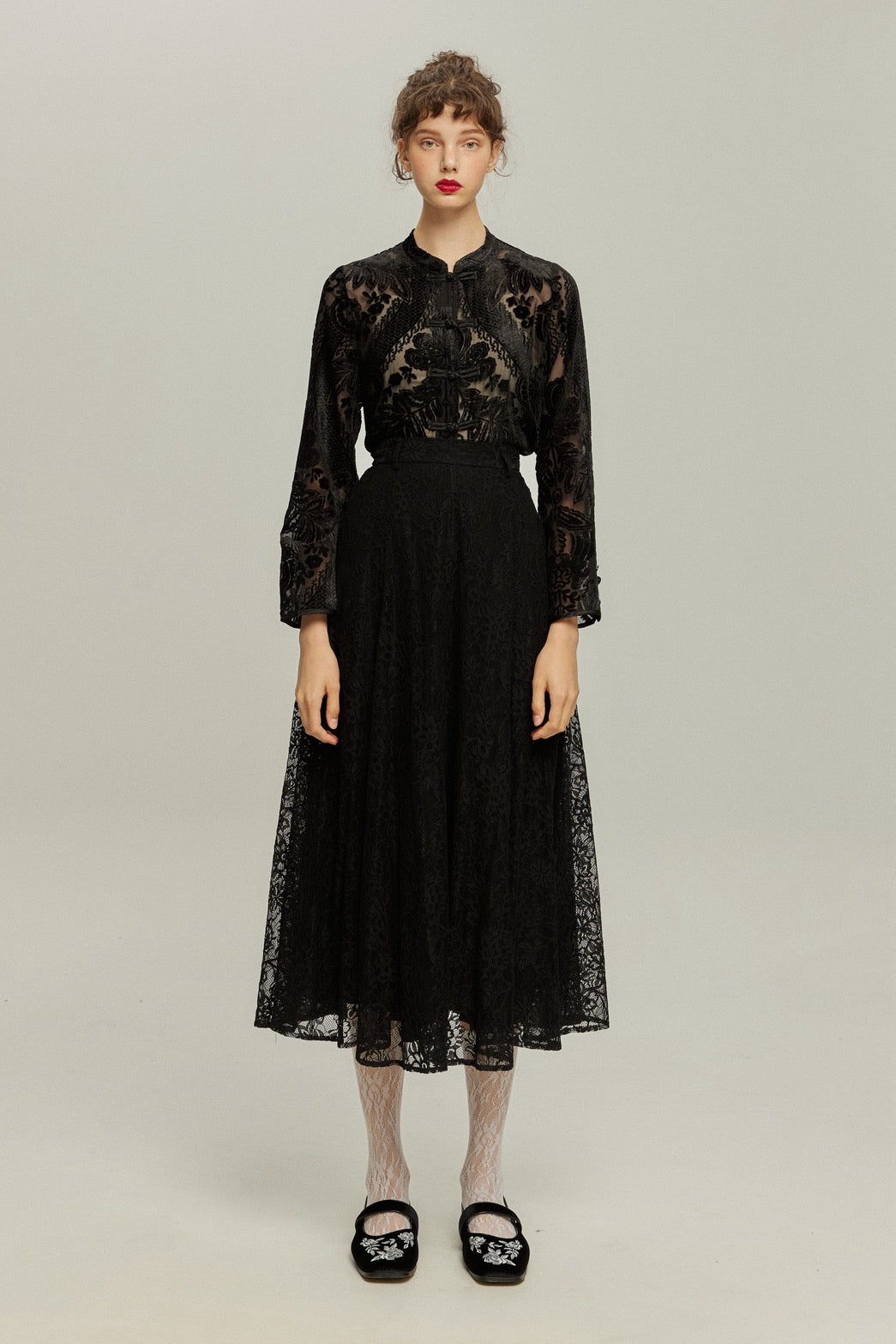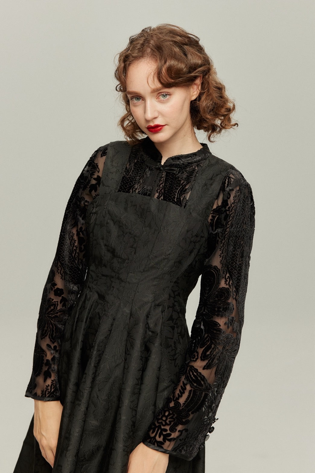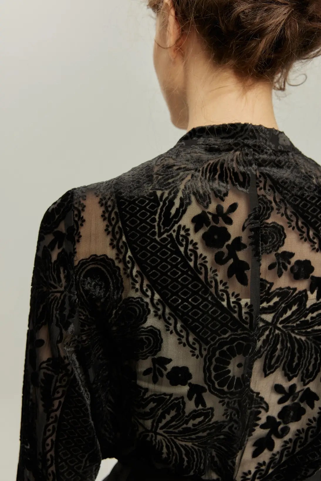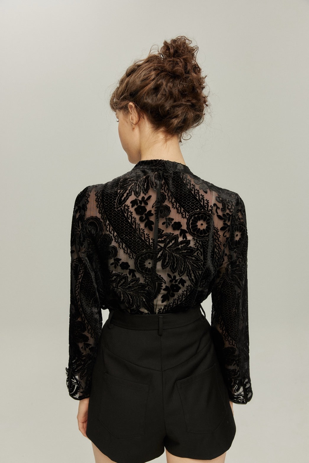 • 生地はベルベット素材&シースルー素材で、柄配置はランダム仕様