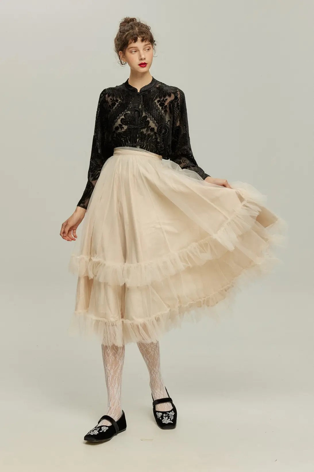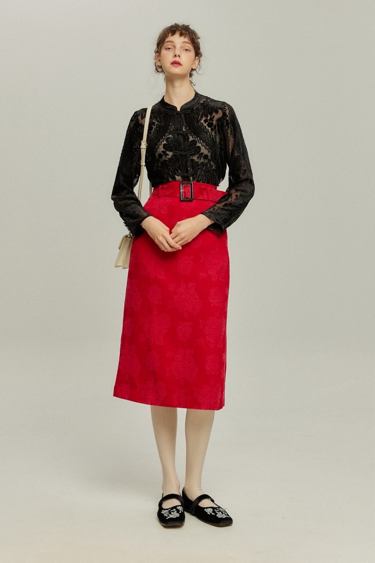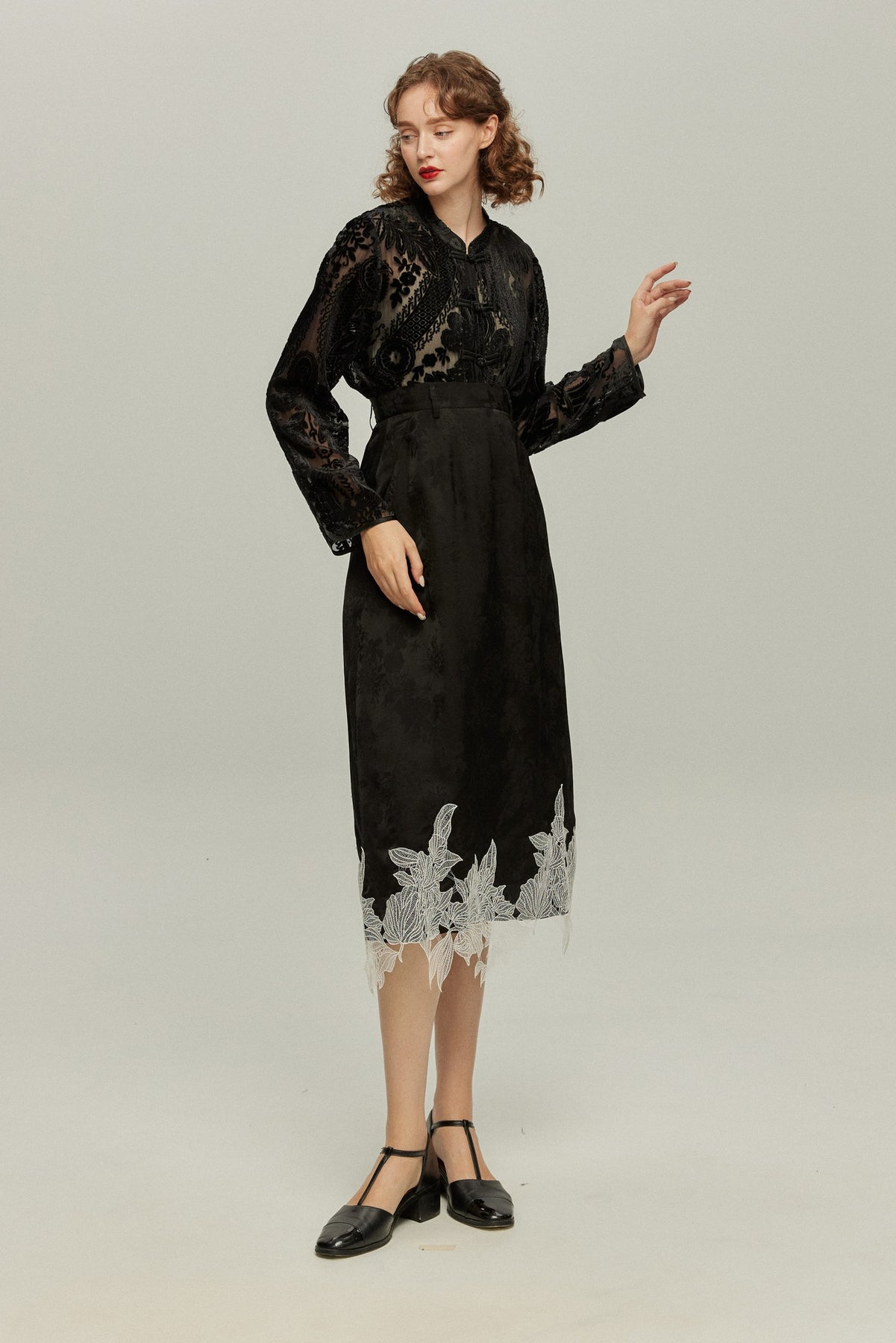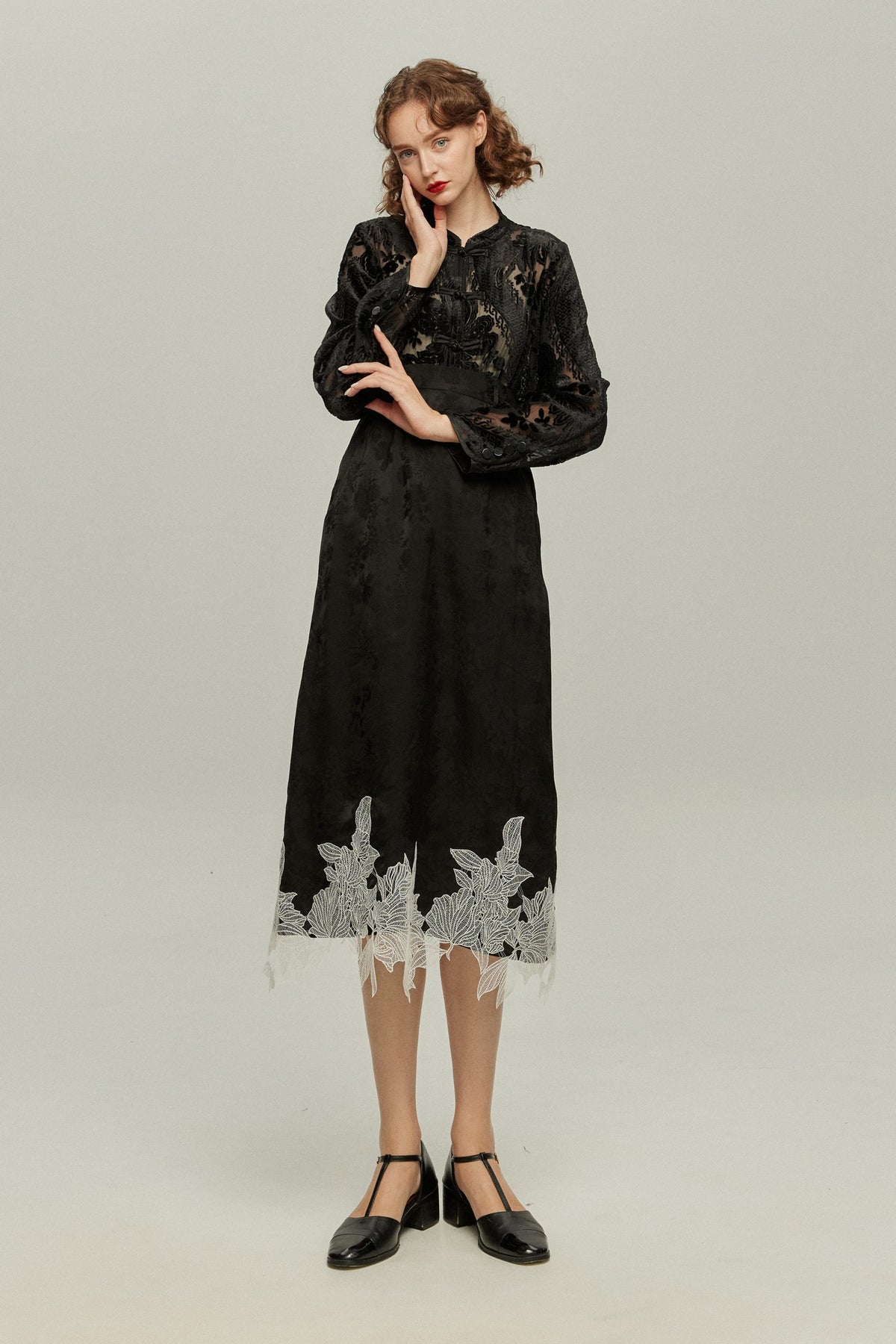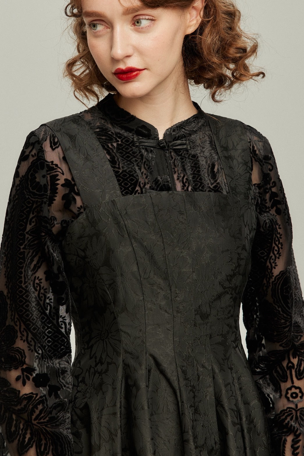 • 生地はベルベット素材&シースルー素材で、柄配置はランダム仕様
