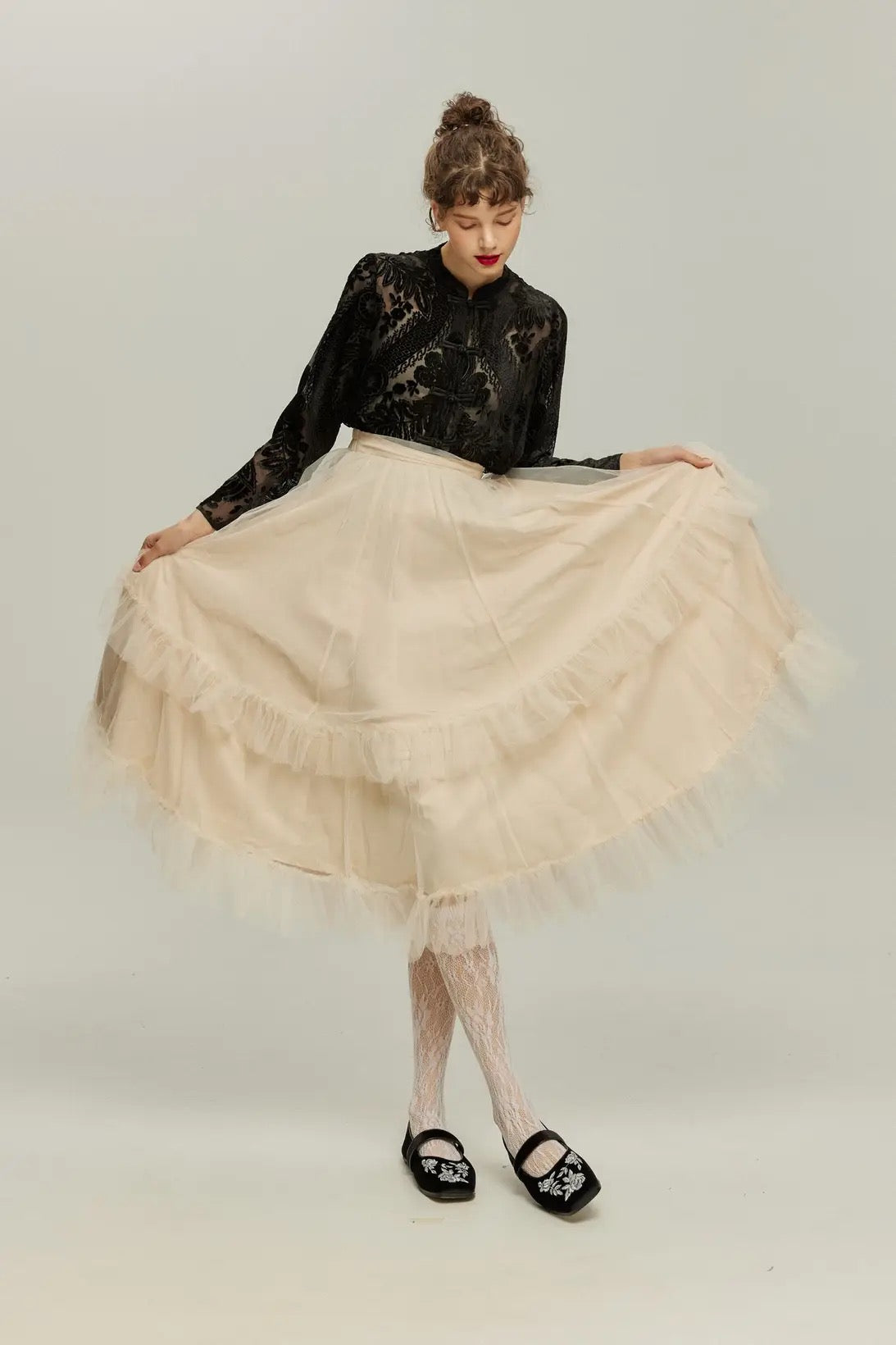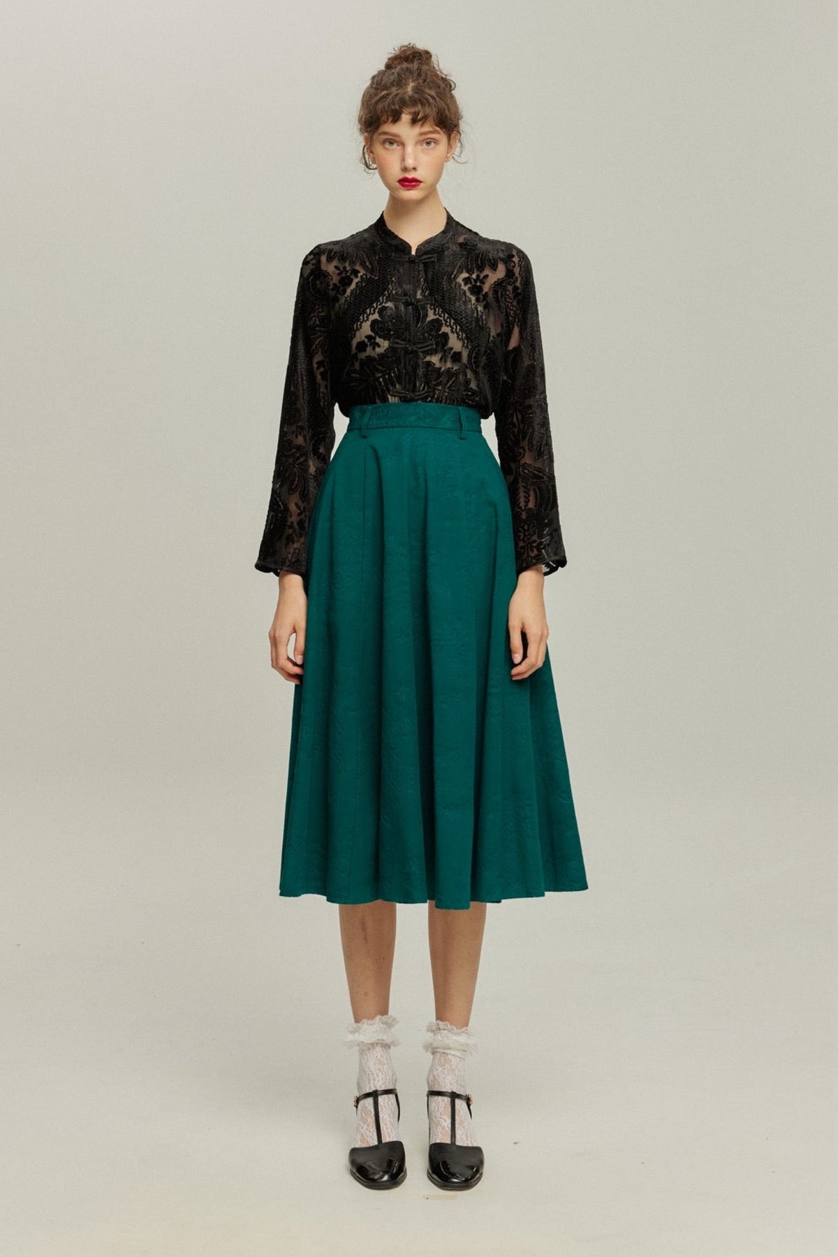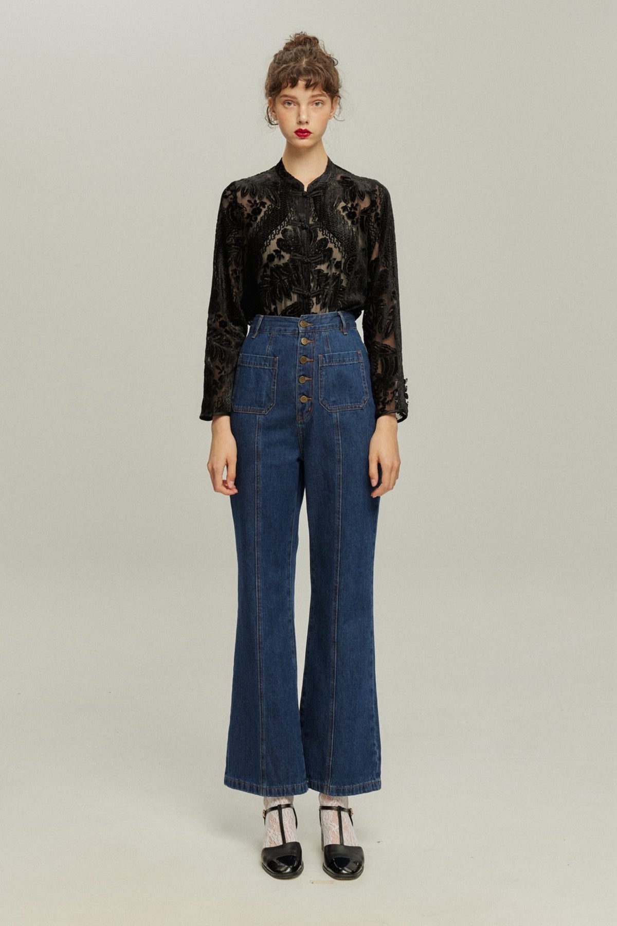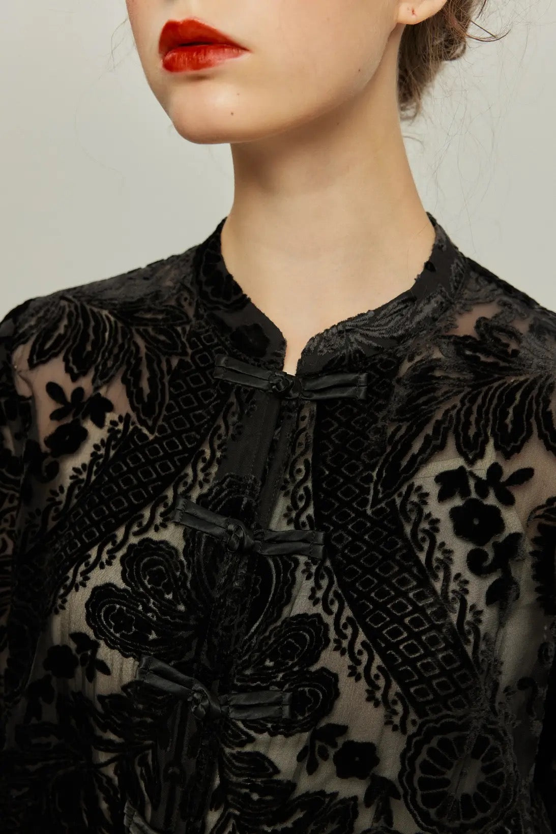 《茶葉でも占えます》チャイナバックルベルベットトップス-Black