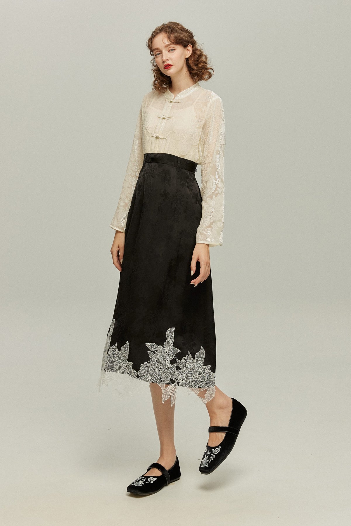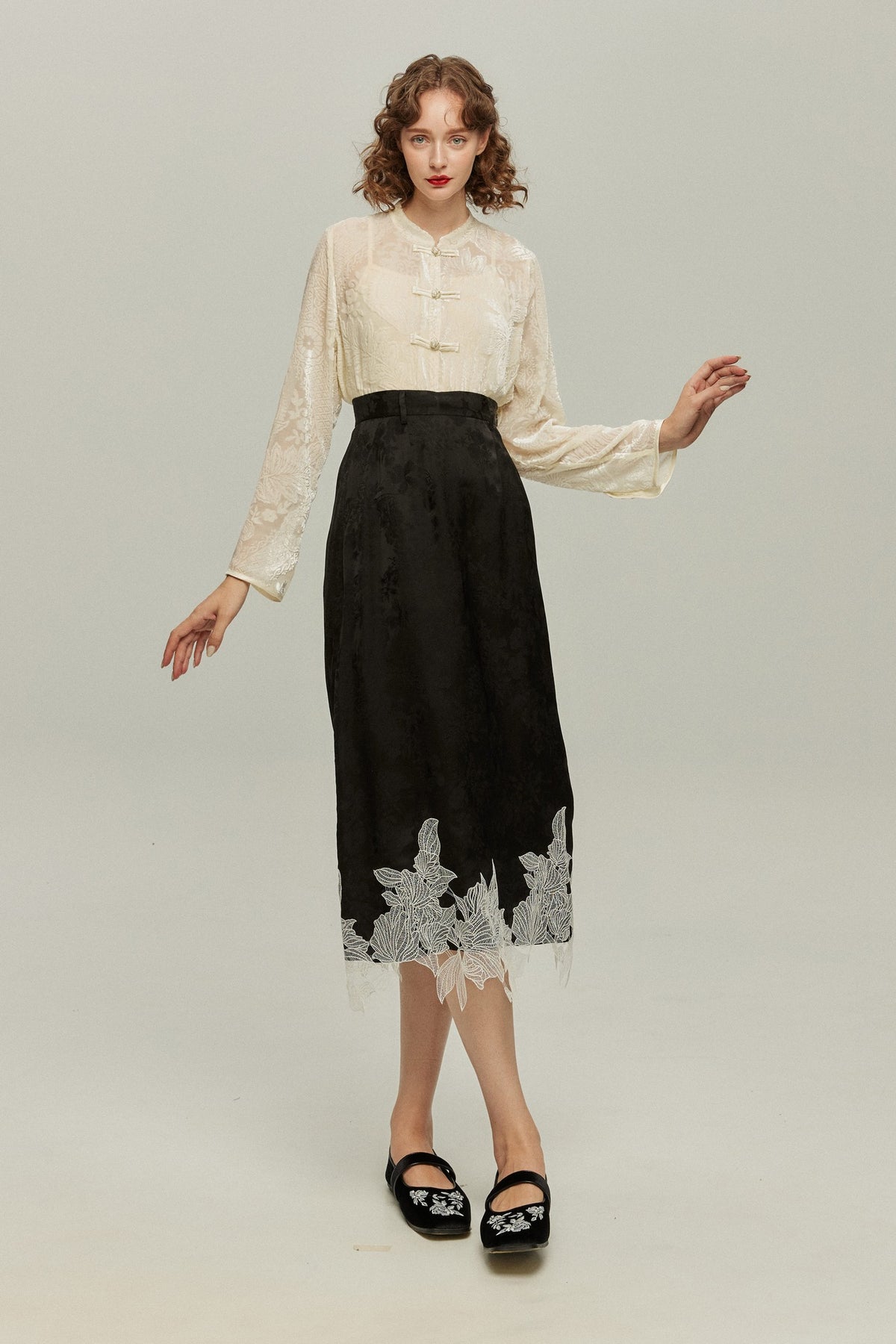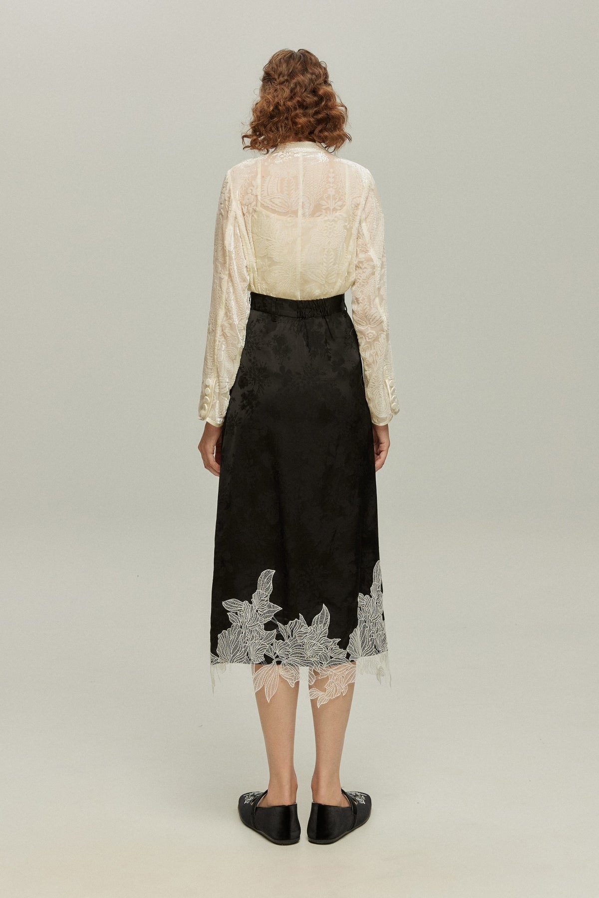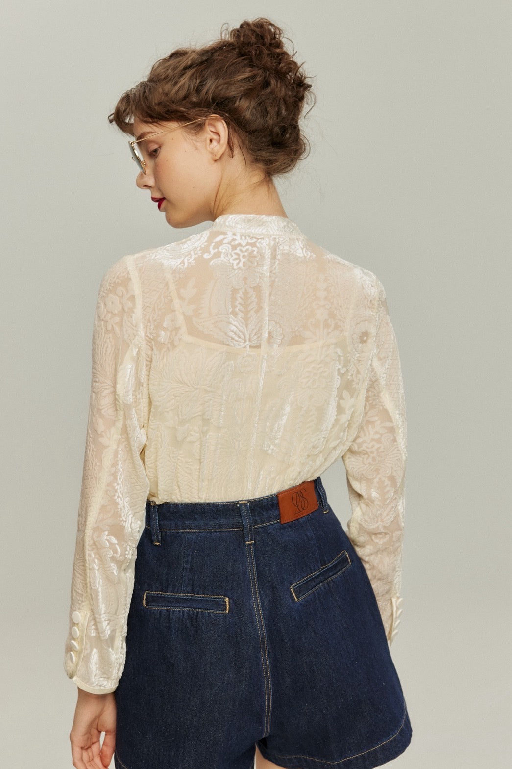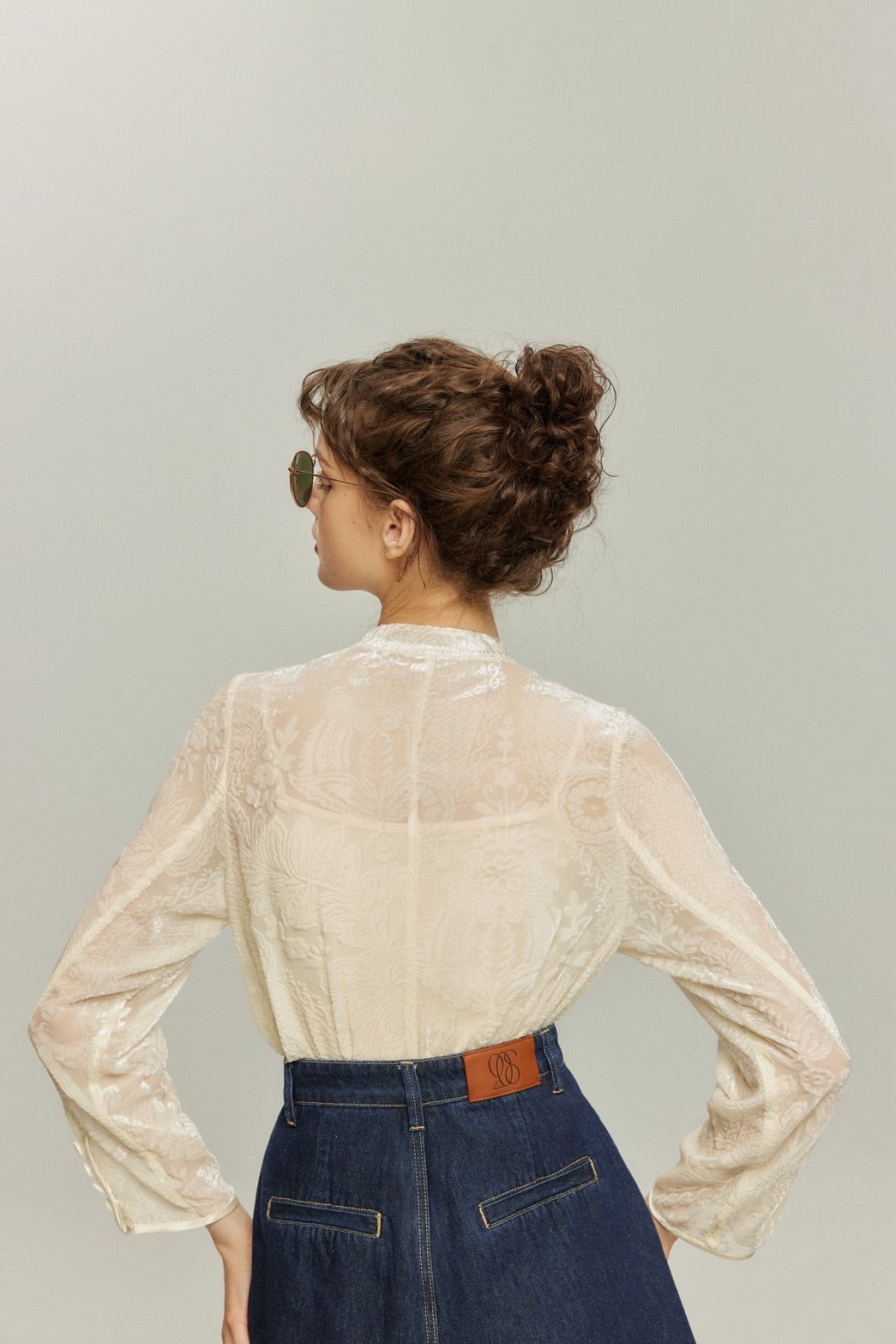 • 生地はベルベット素材&シースルー素材で、柄配置はランダム仕様