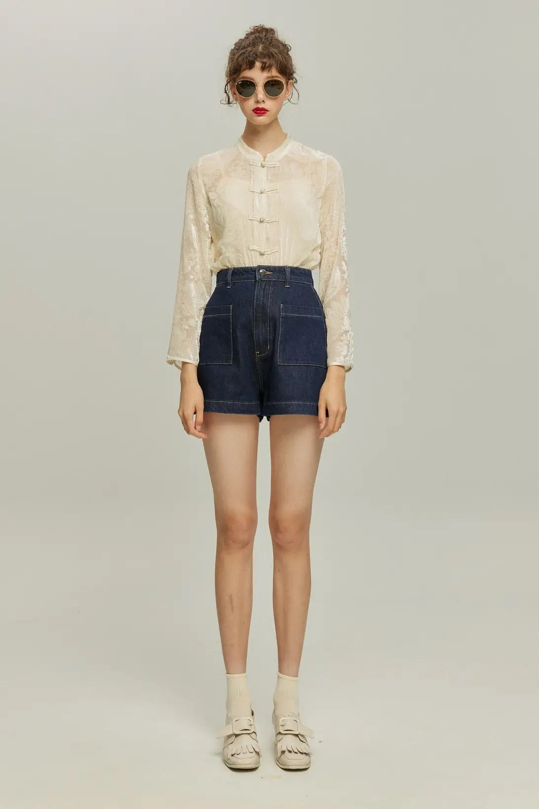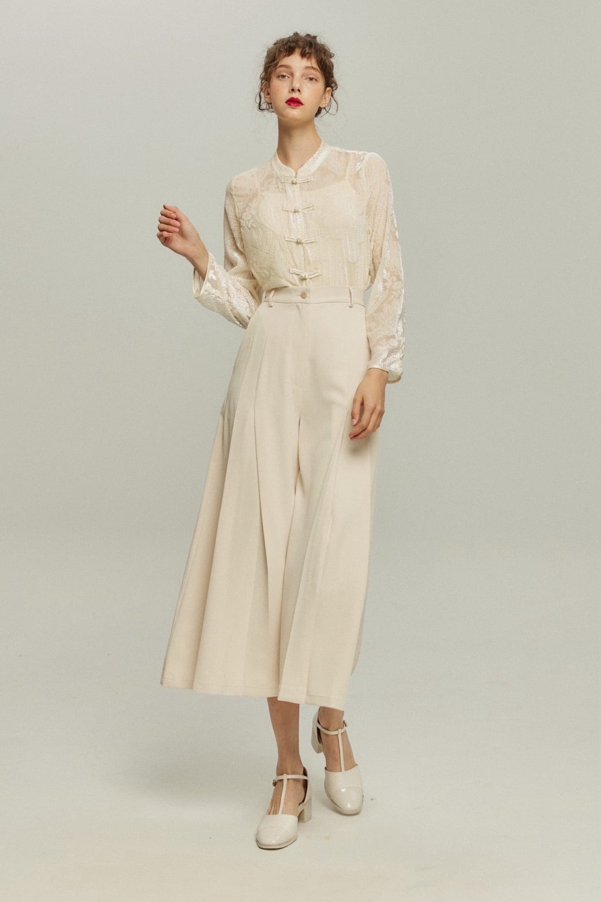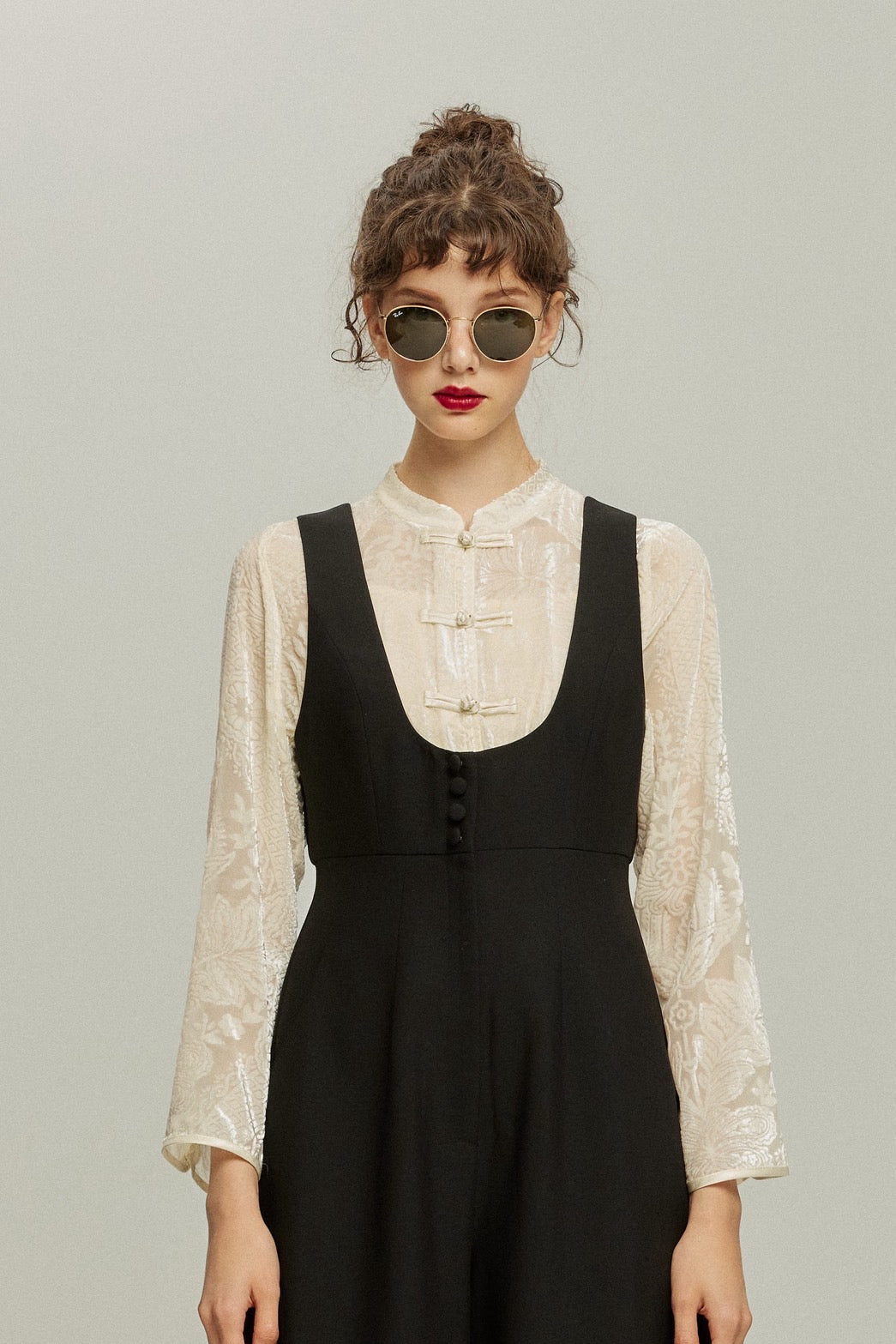 《茶葉でも占えます》チャイナバックルベルベットトップス-White