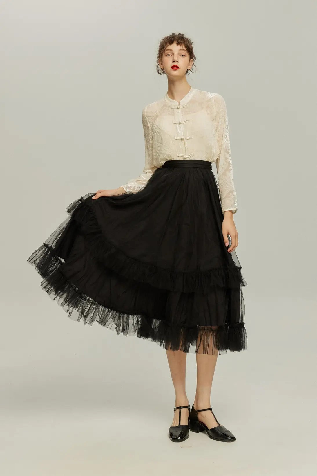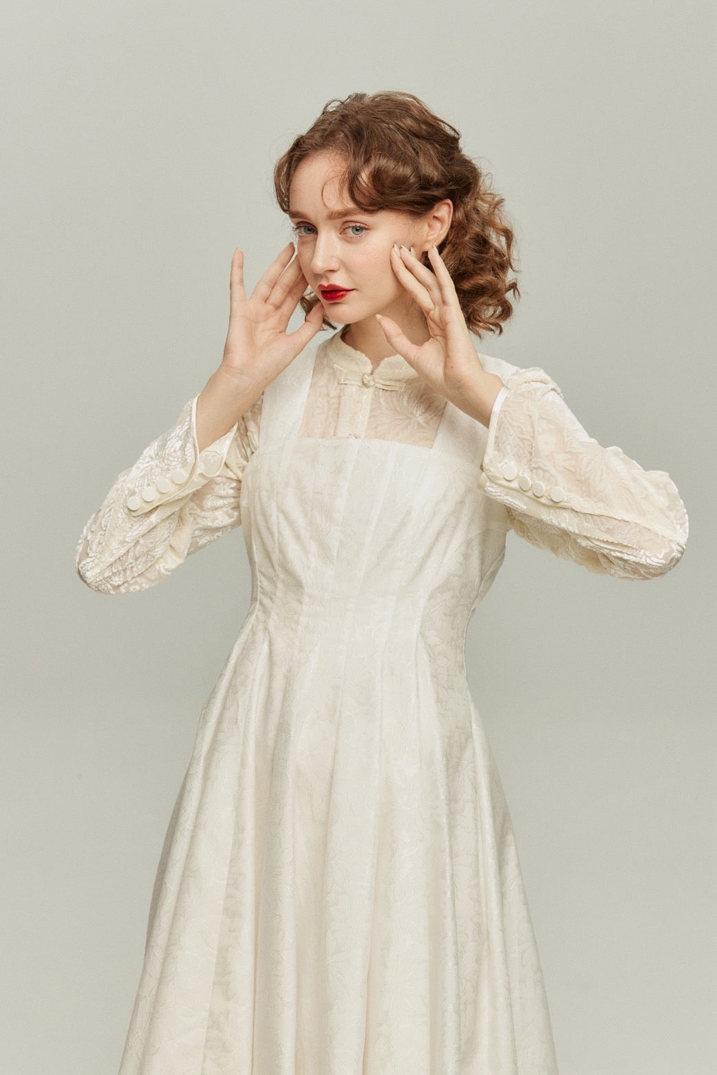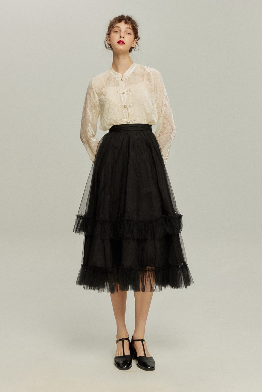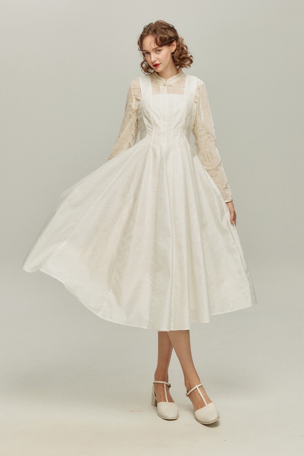 《茶葉でも占えます》チャイナバックルベルベットトップス-White